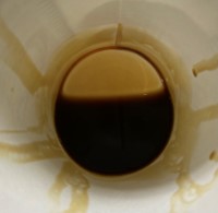In this particular instance, the tech decided to check the condition of the fluid first. He lifted the car and drained a small amount into a cup to determine the condition of the fluid. This is what he found. When looking at it you might think “…ok… it’s just dirty fluid?”